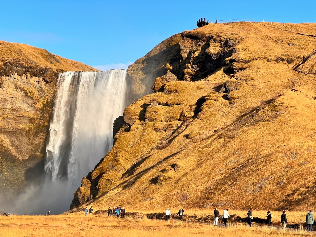 In den Süden auf der Ringstraße 1 von Reykjavik bis nach Vík í Mýrdal. Eine schöne Strecke von ca 190km, für die man sich Zeit nehmen sollte. Viele Sehenswürdigkeiten und viel Verkehr und Menschen. Vor allem in den Sommermonaten, obwohl, nein immer. Ich war im Februar dort, da war trotz Sturm, Eis und Böen von 80km/h richtig viel los und im Sommer noch mehr…. Aber ich kann es verstehen. Es ist wunderschön, die Wasserfälle, den Schwarzen Strand…. Das sind die Attraktionen die angepriesen werden wenn man Island bucht : )