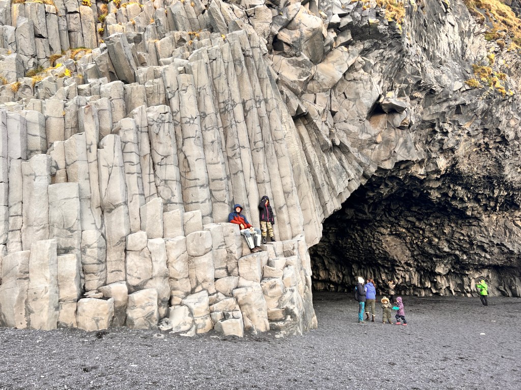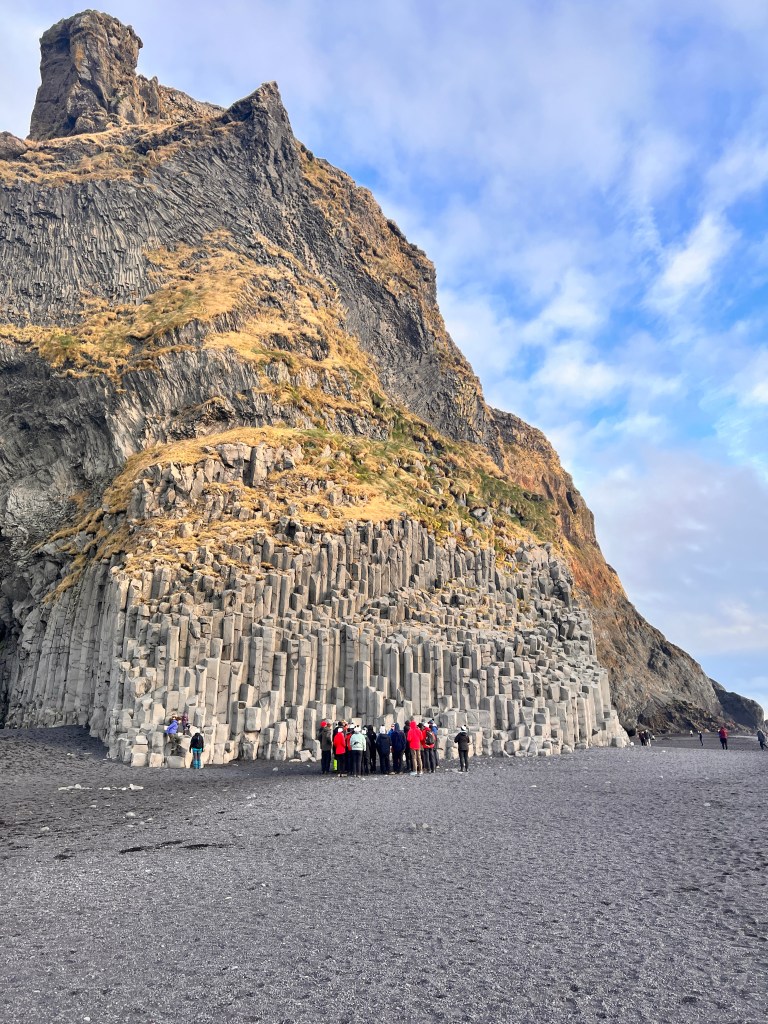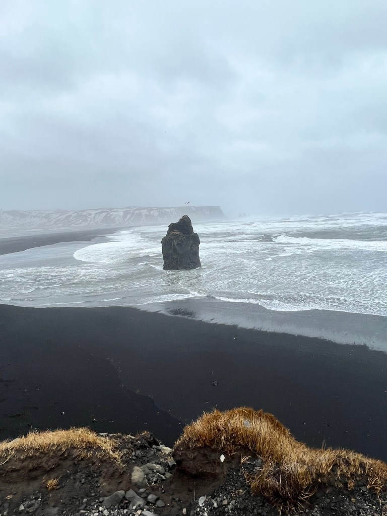 Reynisfjara, ein schwarzer Strand, wildes Meer, Basaltsäulen und spitze, hohe Felsen, die aus dem Meer ragen. Ein wunderschöner, sehr gefährlicher Strand. Das Meer ist unberechenbar. Dort ist Vorsicht geboten. Es sind auch schon einige Menschen zu Schaden gekommen.