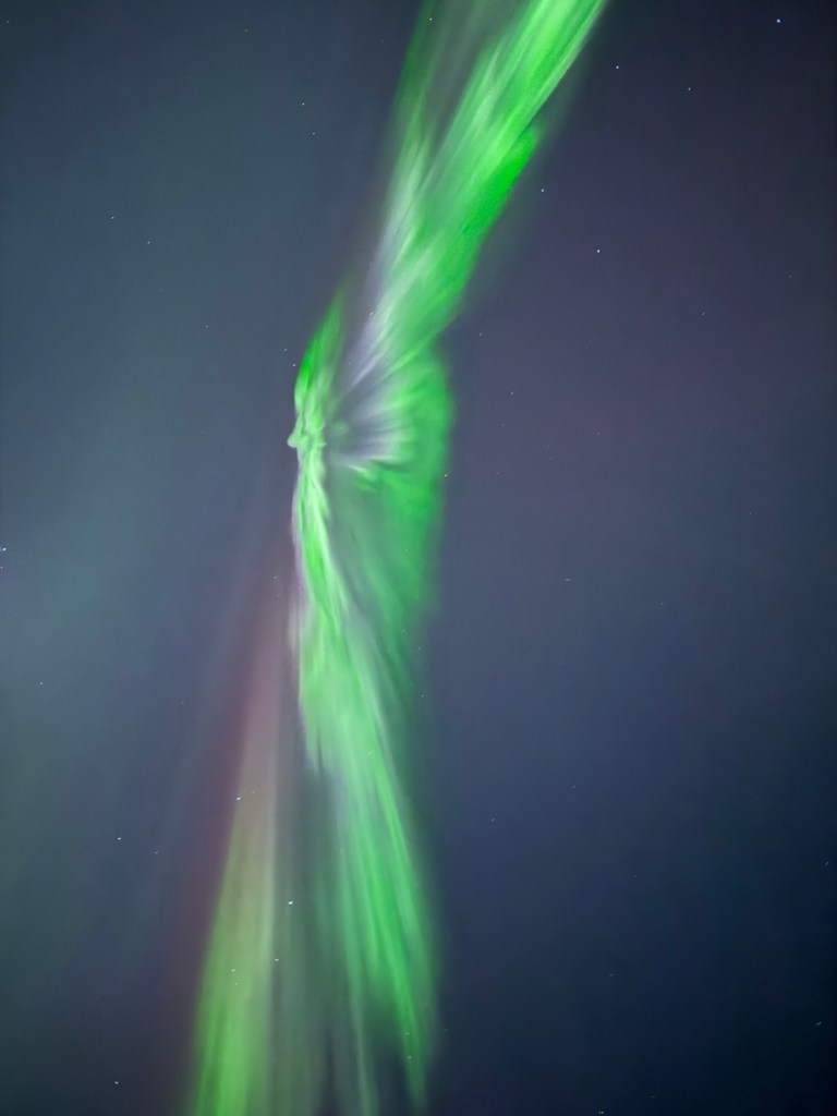 Am letzten Abend meines letzten Aufenthaltes in Island ist es tatsächlich passiert… am Meer unten in der Stadt bauten ganz viele Menschen ihre Fotostative auf und ich dachte ach, da muss was los sein… Zückte dann mein Handy und leuchtete den Himmel ab. Mit der Telefonkamera kann man auch oft schon ganz schwache Nordlichter als leichte grünliche Streifen erkennen. und so war es.. über der Esja zeichneten sich leichte grüne Streifen ab. Und dann wurde es ein fest der tanzenden Lichter am Himmel. Wunderbar und das mitten in der Stadt. Ein wunderschönes Erlebnis.